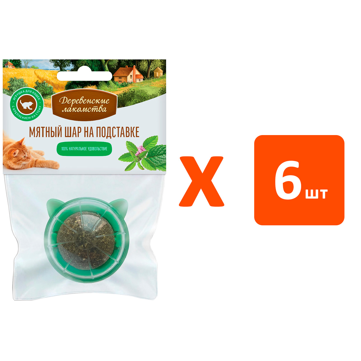 Лакомства для кошек ДЕРЕВЕНСКИЕ игрушка мятный шар на подставке (1 шт х 6)Возраст питомца