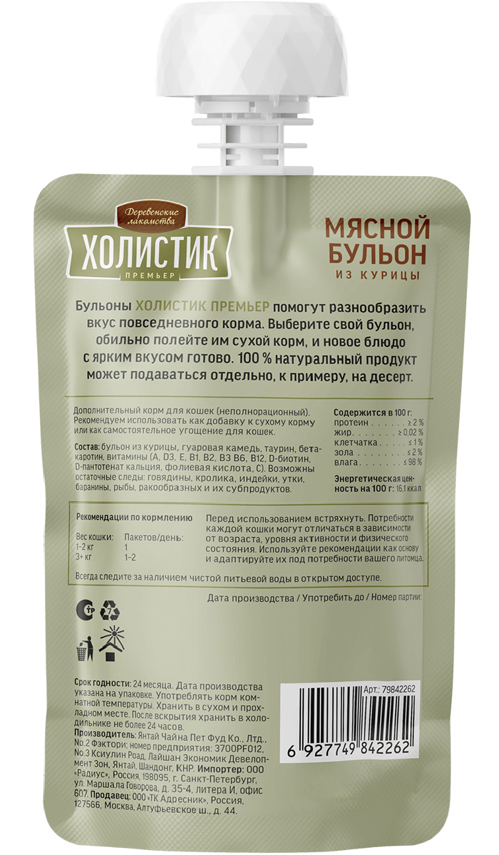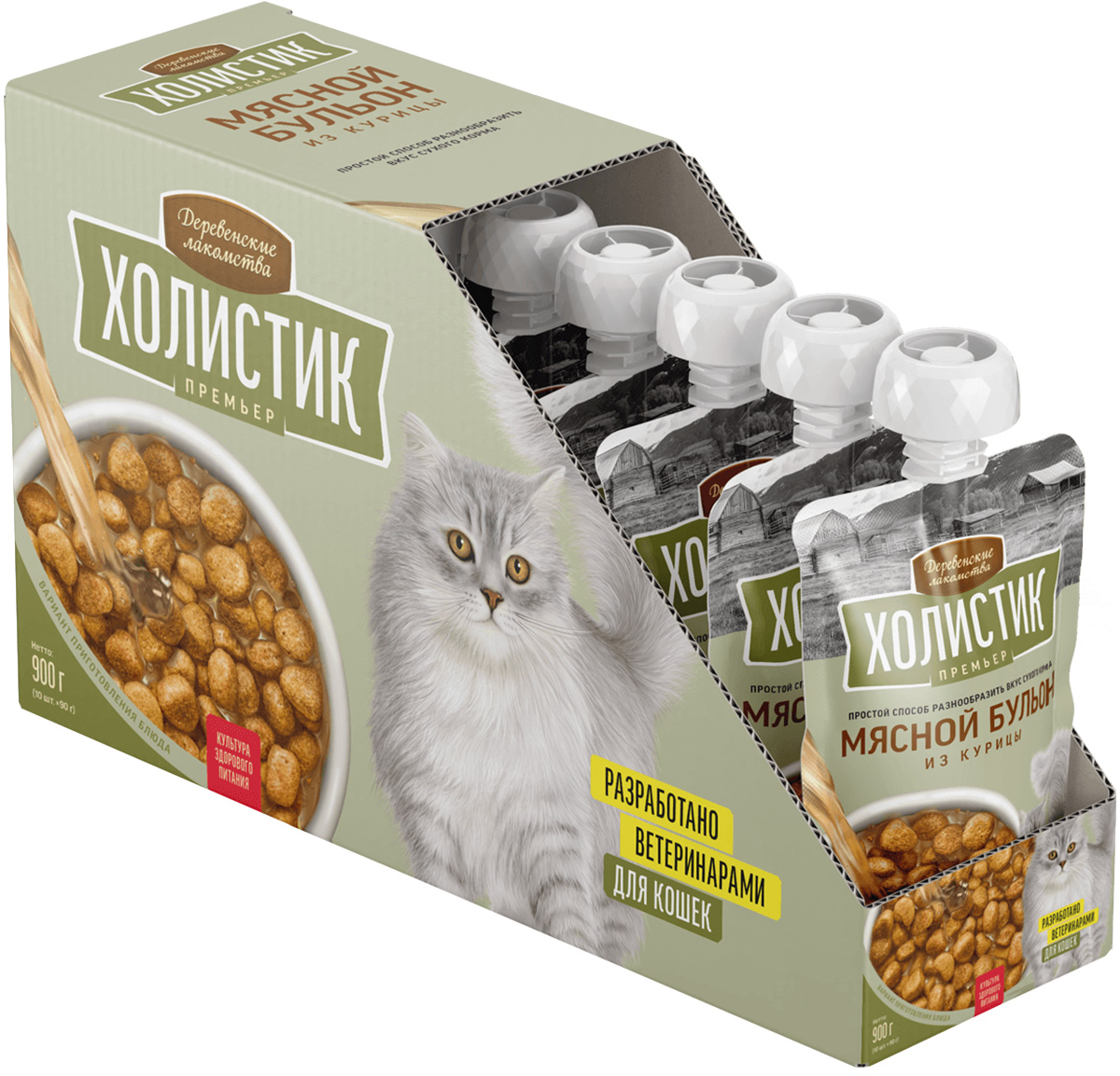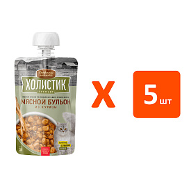 Лакомства для кошек ДЕРЕВЕНСКИЕ ХОЛИСТИК ПРЕМЬЕР МЯСНОЙ БУЛЬОН курица (90 гр х 5 шт)