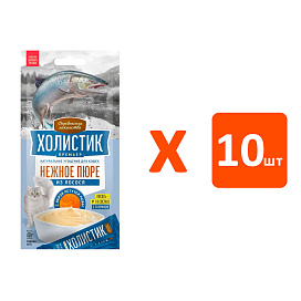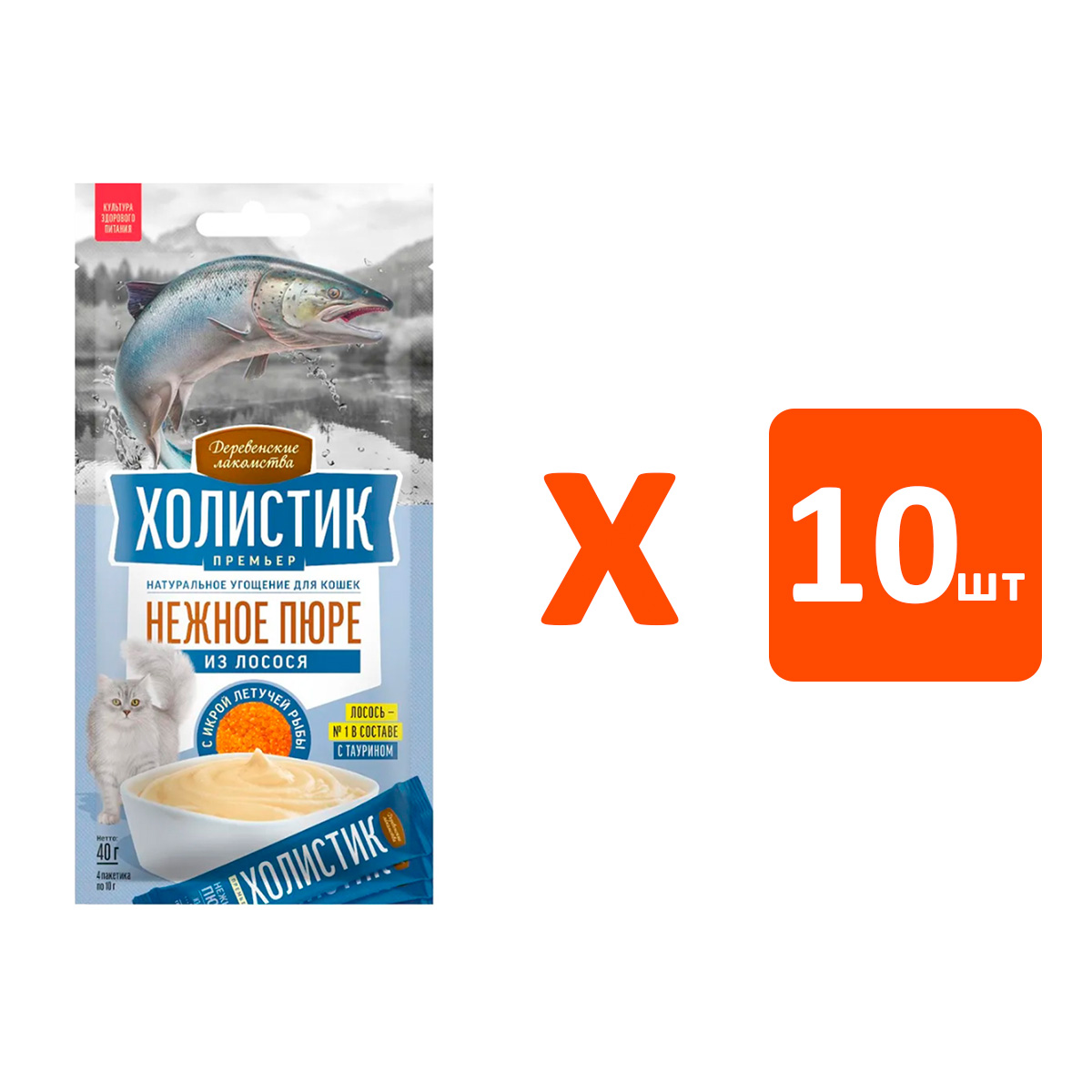 Лакомства для кошек ДЕРЕВЕНСКИЕ ХОЛИСТИК ПРЕМЬЕР пюре лосось, икра летучей рыбы 40 гр (1 шт х 10)