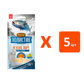 Лакомства для кошек ДЕРЕВЕНСКИЕ ХОЛИСТИК ПРЕМЬЕР пюре тунец, икра летучей рыбы 40 гр (1 шт х 5)