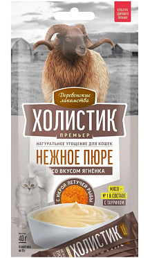Лакомства для кошек ДЕРЕВЕНСКИЕ ХОЛИСТИК ПРЕМЬЕР пюре ягненок, икра летучей рыбы 40 гр (1 шт)