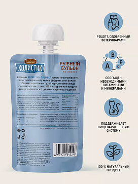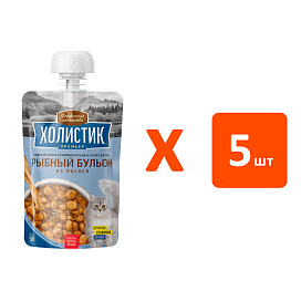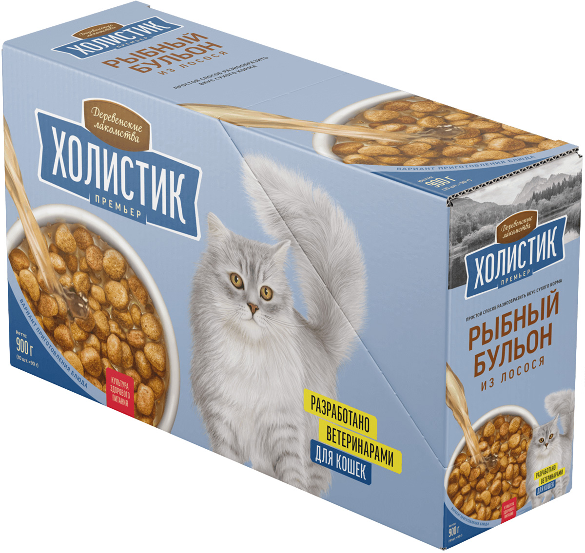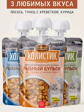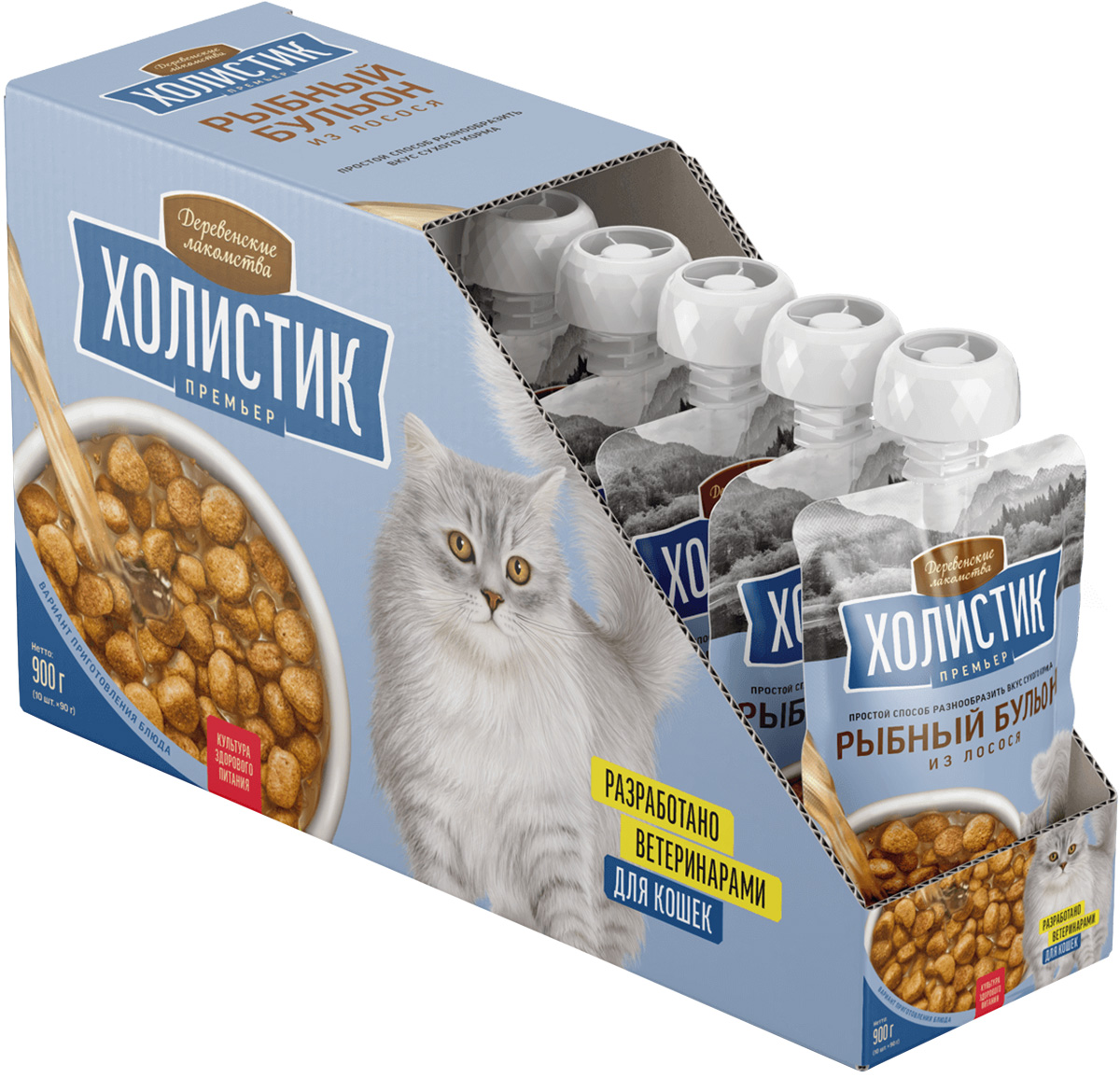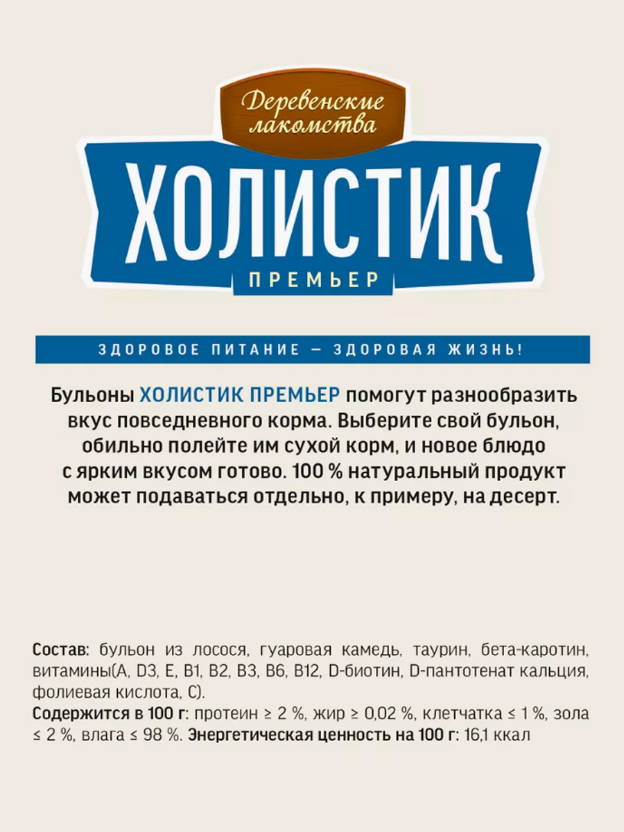 Лакомства для кошек ДЕРЕВЕНСКИЕ ХОЛИСТИК ПРЕМЬЕР РЫБНЫЙ БУЛЬОН лосось (90 гр х 5 шт)