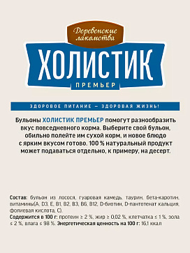 Бульоны Деревенские Лакомства Холистик Премьер помогут разнообразить вкус повседневного корма.