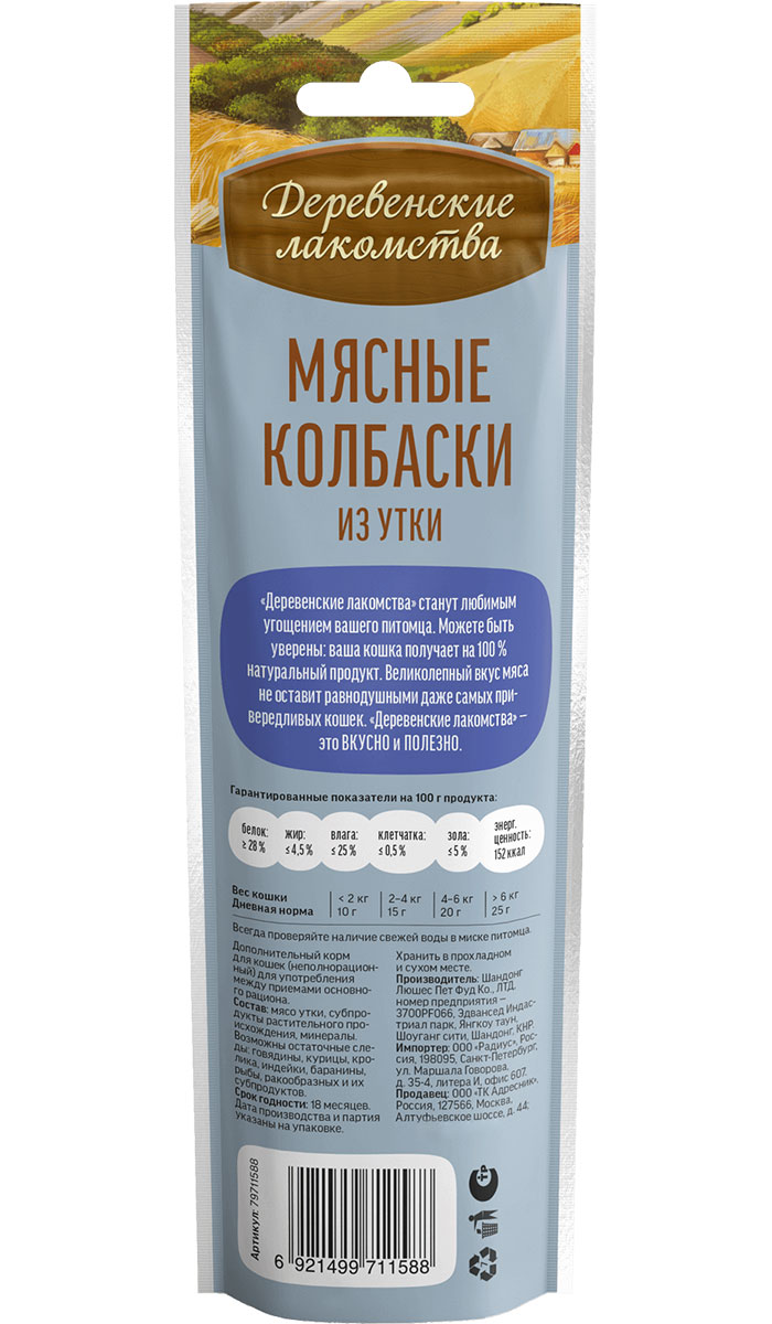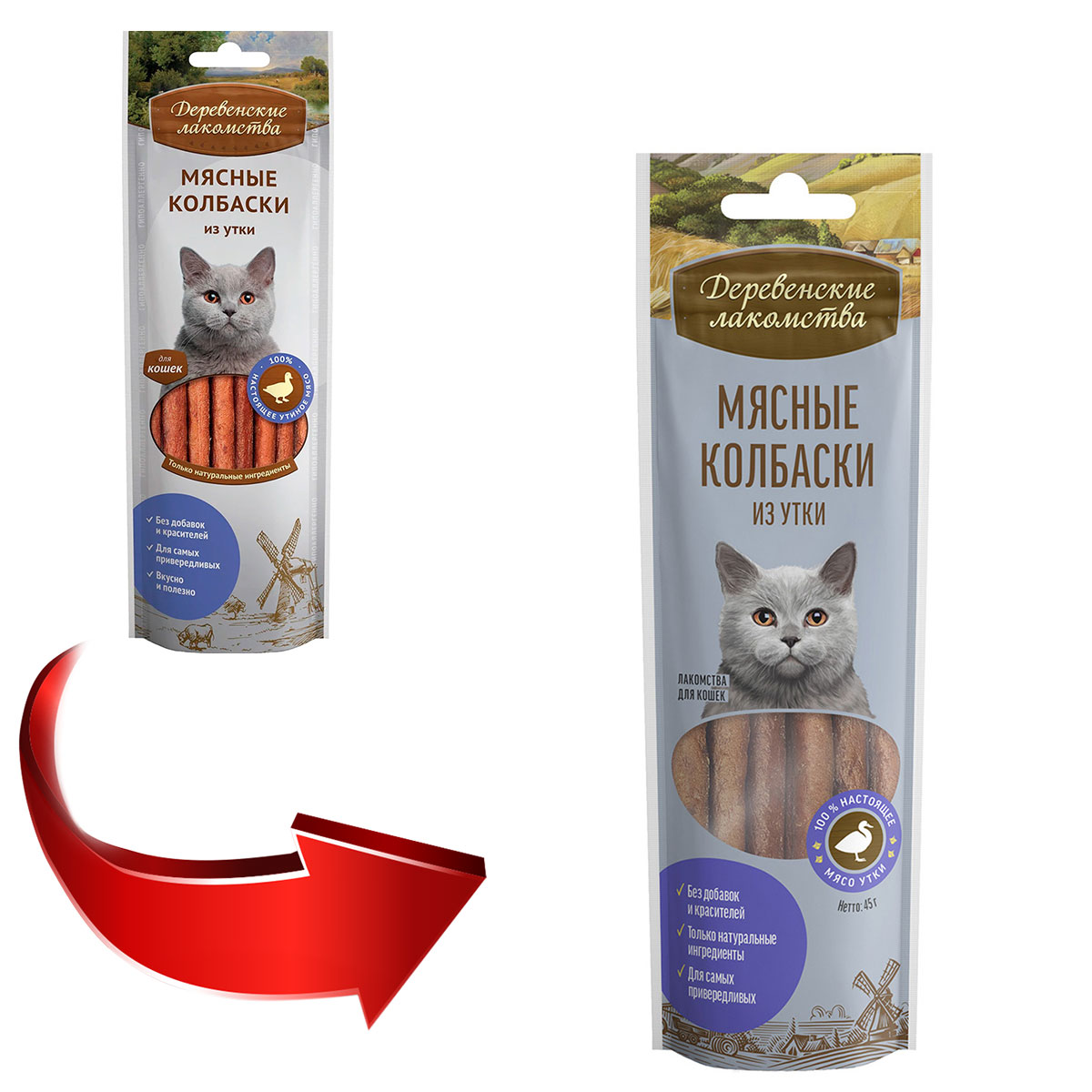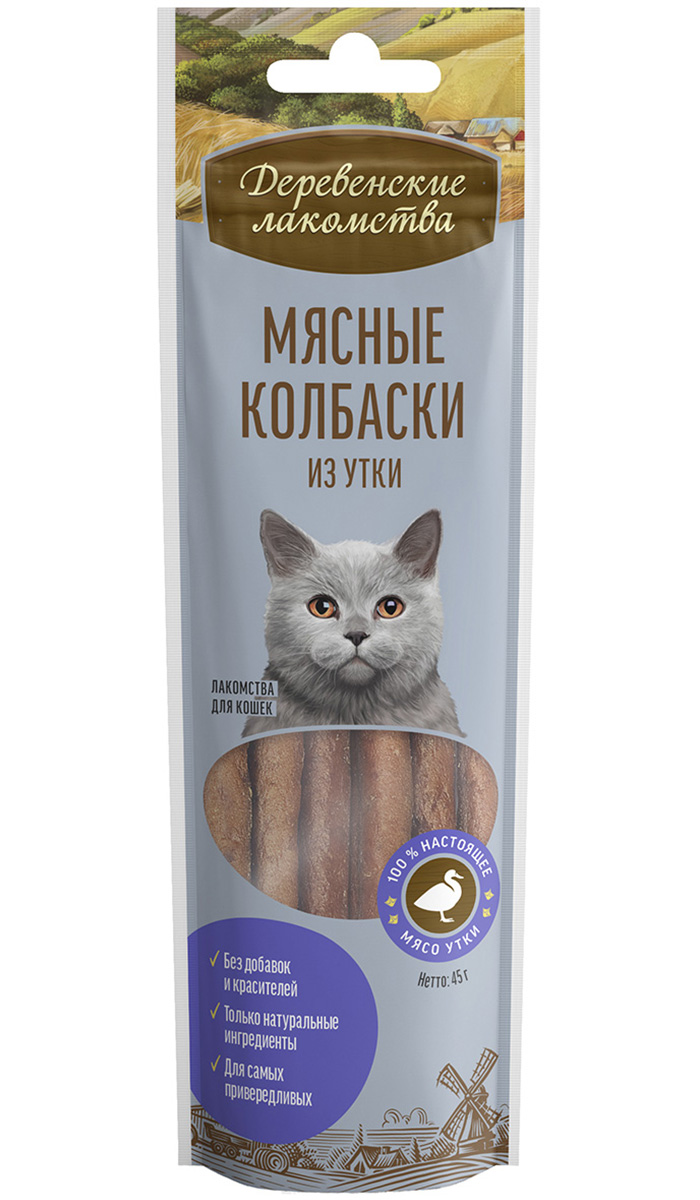 Лакомства для кошек ДЕРЕВЕНСКИЕ колбаски утка (45 гр)