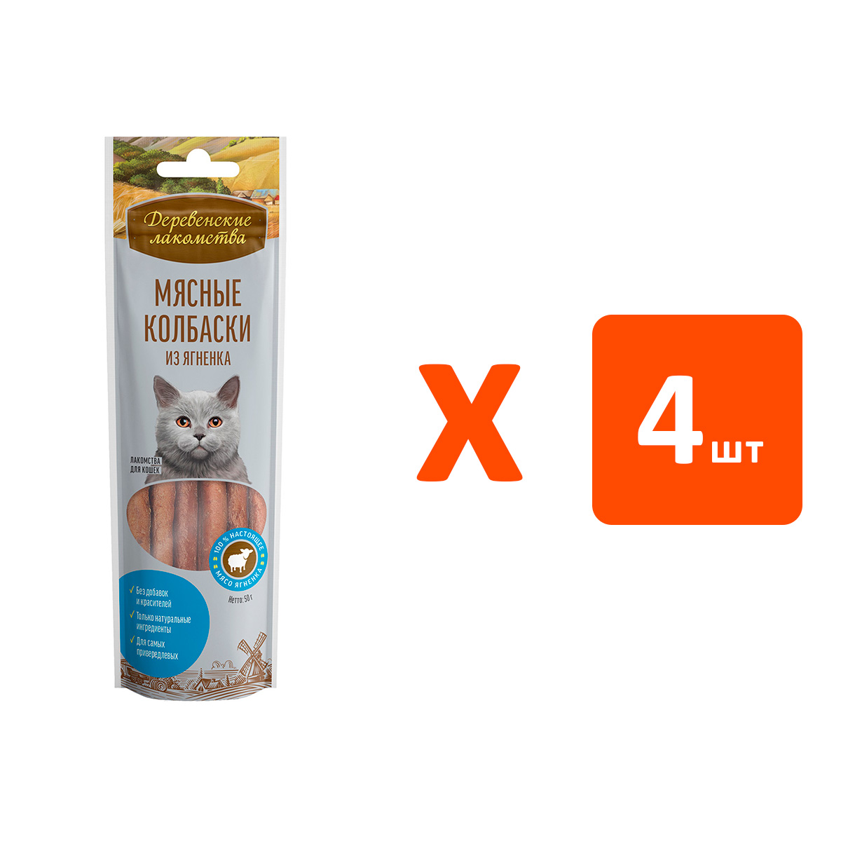 Лакомства для кошек ДЕРЕВЕНСКИЕ колбаски ягненок (45 гр х 4 шт)