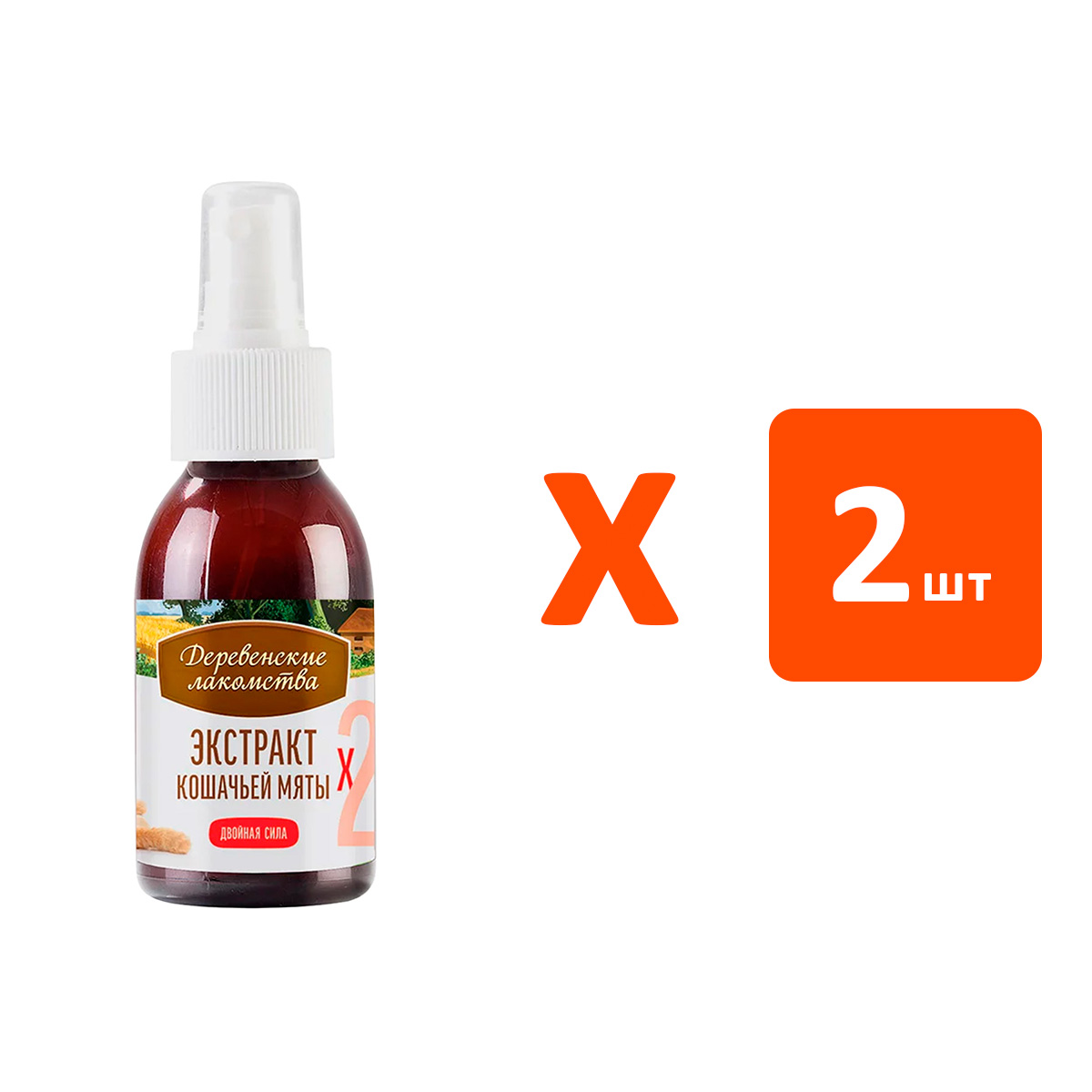 Лакомства для кошек ДЕРЕВЕНСКИЕ кошачья мята двойная сила спрей (100 мл х 2 шт)