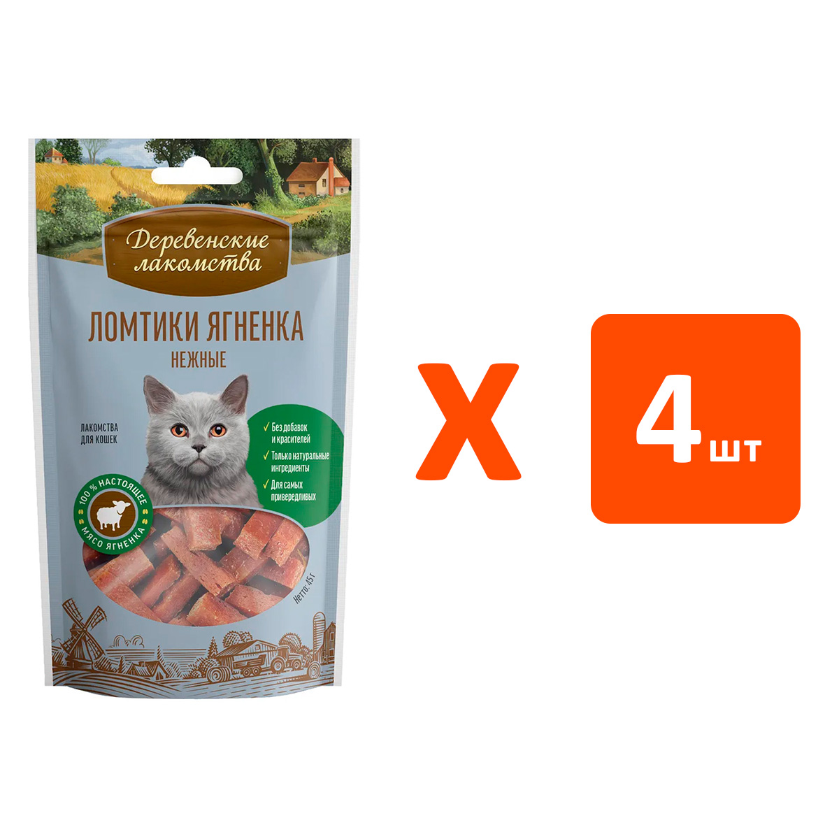 Лакомства для кошек ДЕРЕВЕНСКИЕ ломтики ягненка нежные (45 гр х 4 шт)