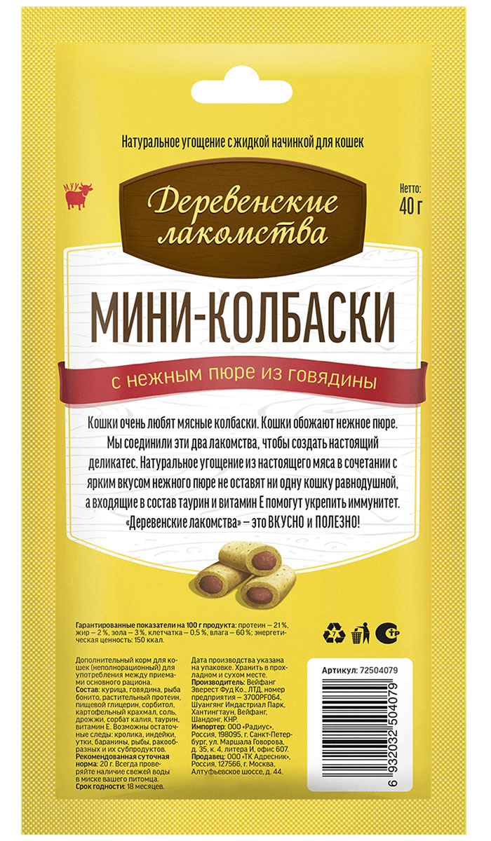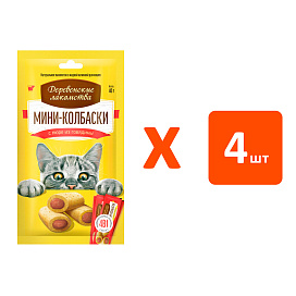 Лакомства для кошек ДЕРЕВЕНСКИЕ мини колбаски с пюре из говядины 4 шт (1 шт х 4)