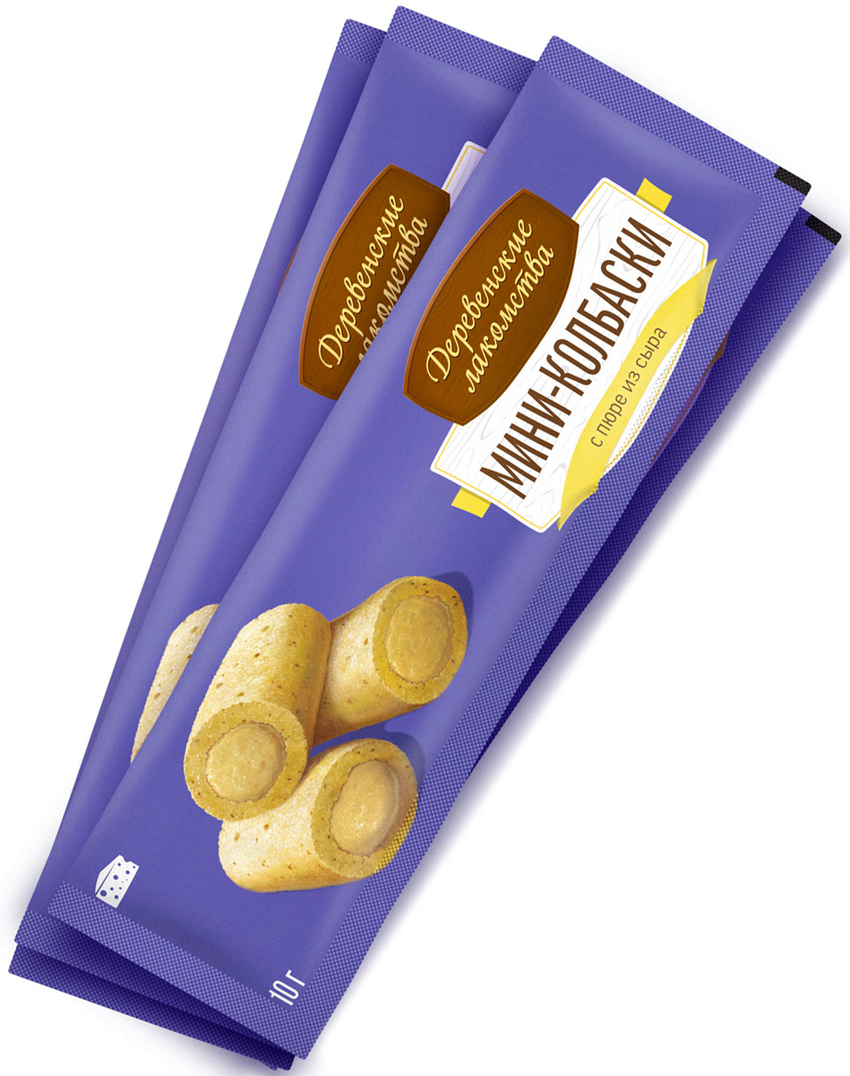 Лакомства для кошек ДЕРЕВЕНСКИЕ мини колбаски с пюре из сыра 4 шт (1 шт х 4)