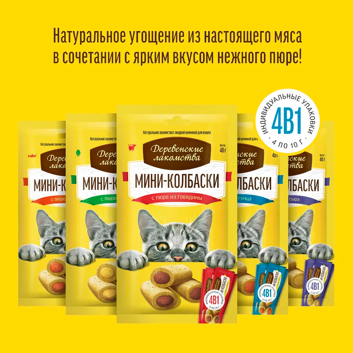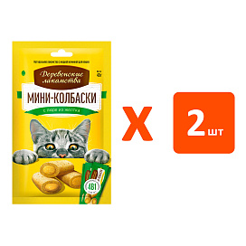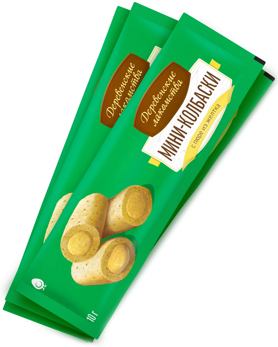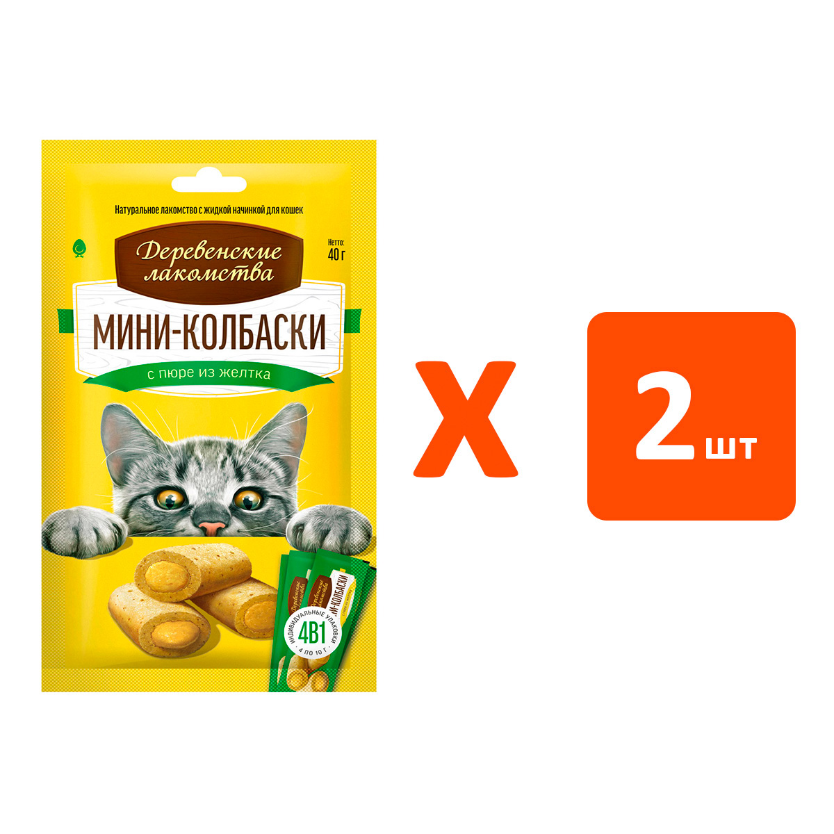 Лакомства для кошек ДЕРЕВЕНСКИЕ мини колбаски с пюре из желтка 4 шт (1 шт х 2)