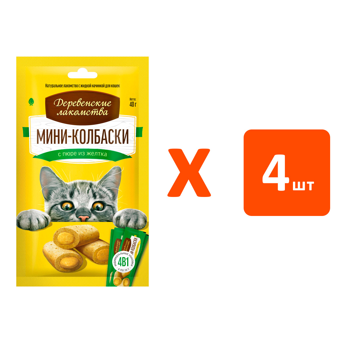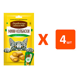 Лакомства для кошек ДЕРЕВЕНСКИЕ мини колбаски с пюре из желтка 4 шт (1 шт х 4)