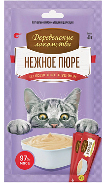 Лакомства для кошек ДЕРЕВЕНСКИЕ МЯСНОЙ ДЕСЕРТ нежное пюре креветки, таурин (4 шт)