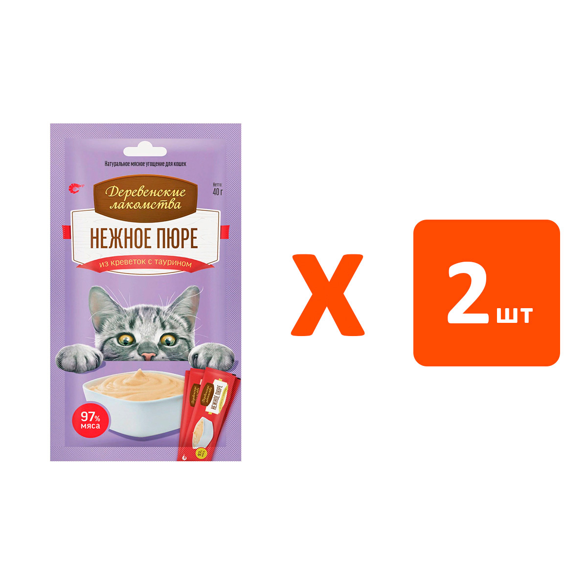 Лакомства для кошек ДЕРЕВЕНСКИЕ МЯСНОЙ ДЕСЕРТ нежное пюре креветки, таурин (4 шт х 2)