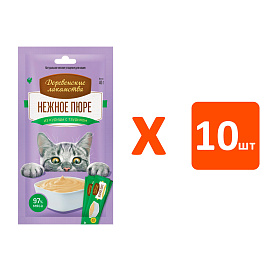 Лакомства для кошек ДЕРЕВЕНСКИЕ МЯСНОЙ ДЕСЕРТ нежное пюре курица, таурин (4 шт х 10)