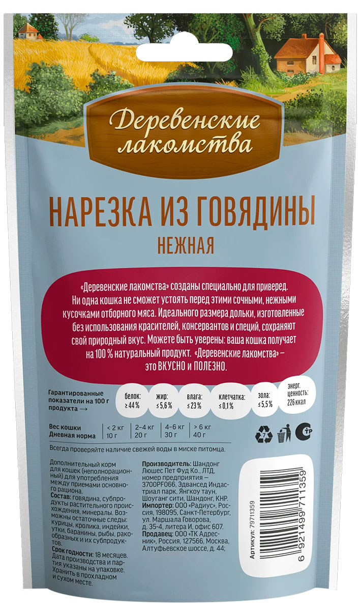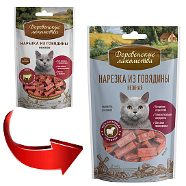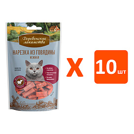 Лакомства для кошек ДЕРЕВЕНСКИЕ нарезка из говядины нежная (45 гр х 10 шт)