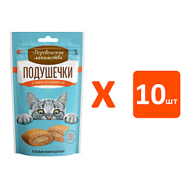 Лакомства для кошек ДЕРЕВЕНСКИЕ подушечки с пюре из креветок 30 гр (1 шт х 10)