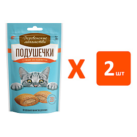 Лакомства для кошек ДЕРЕВЕНСКИЕ подушечки с пюре из креветок 30 гр (1 шт х 2)