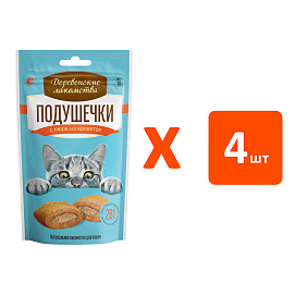 Лакомства для кошек ДЕРЕВЕНСКИЕ подушечки с пюре из креветок 30 гр (1 шт х 4)