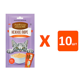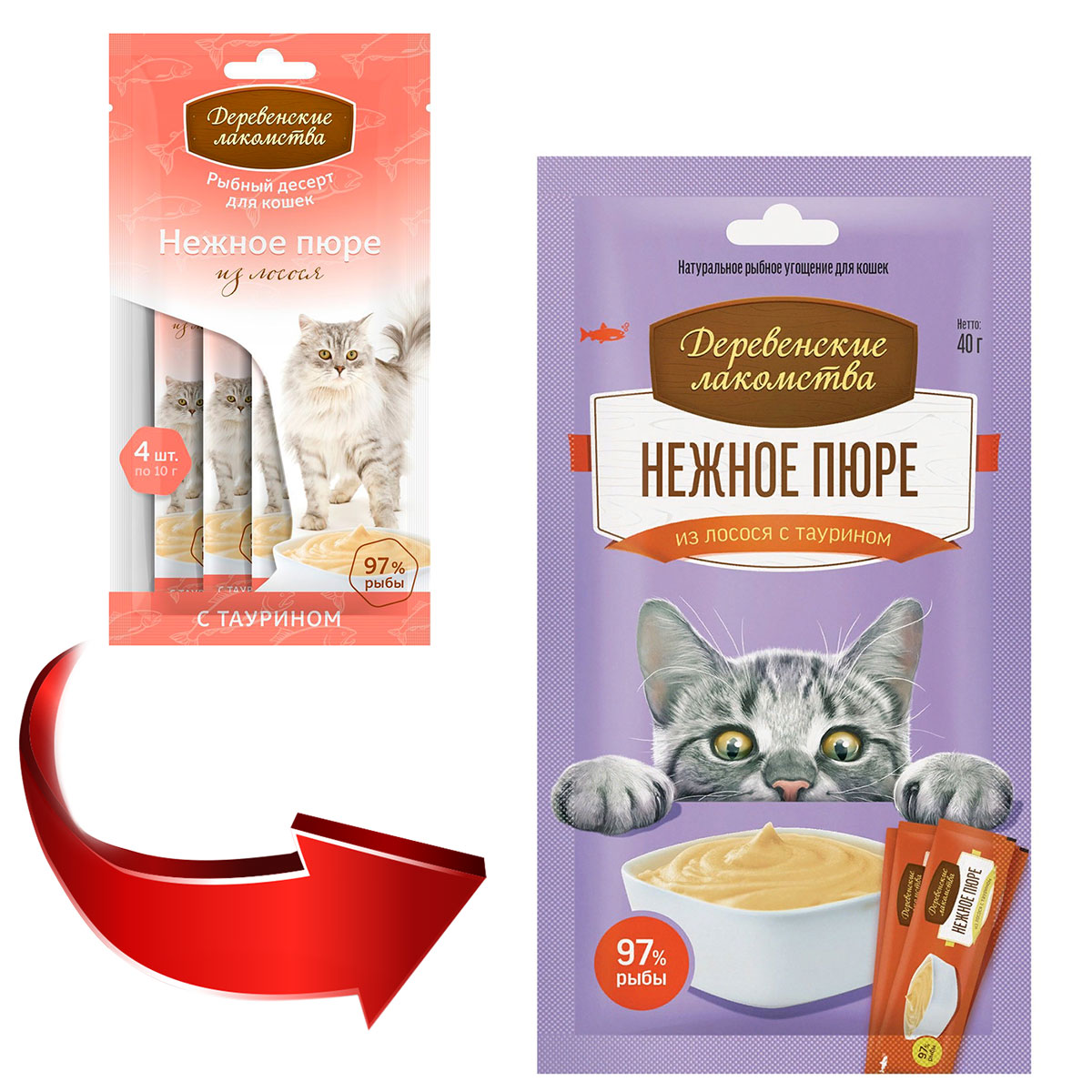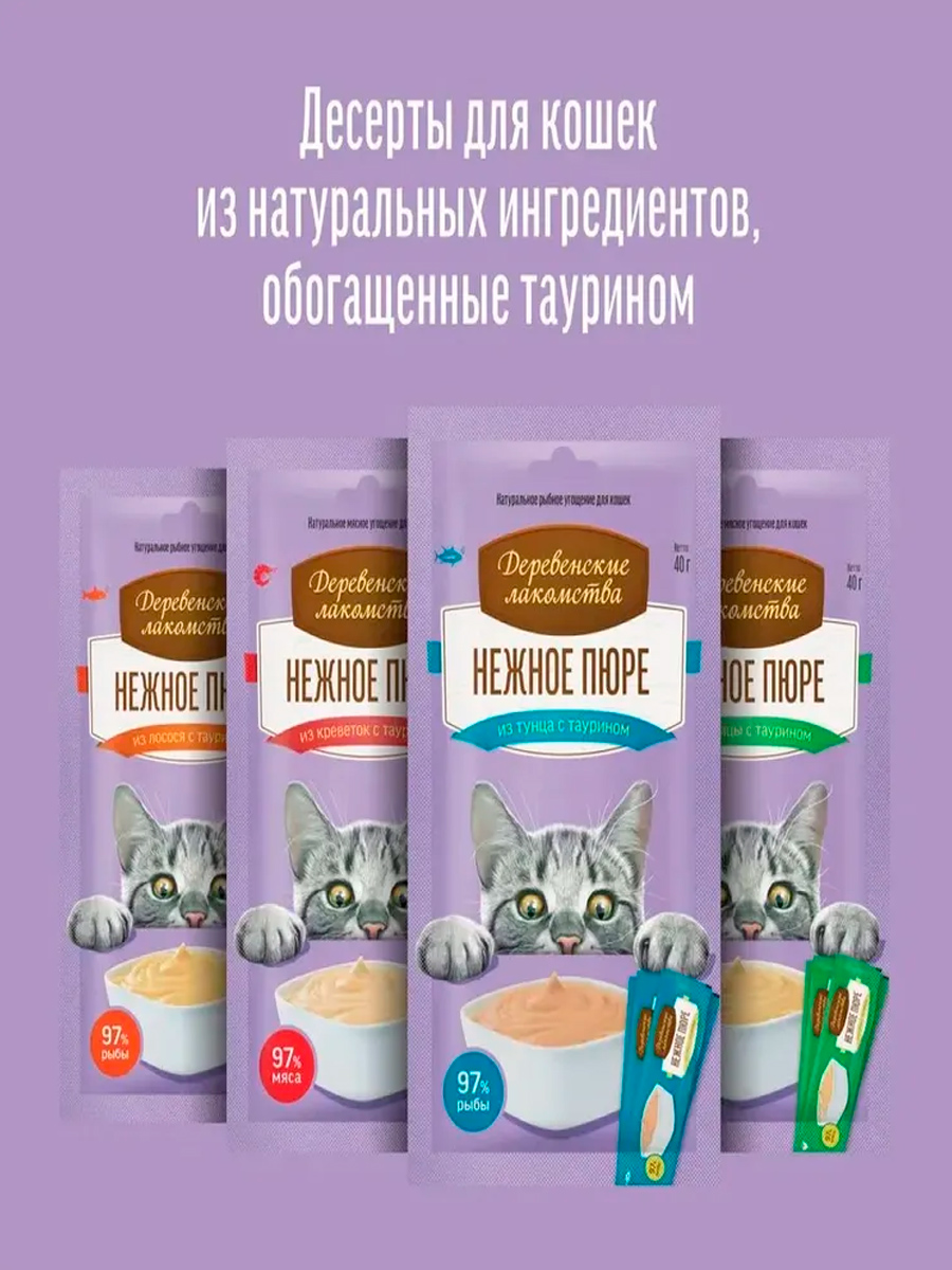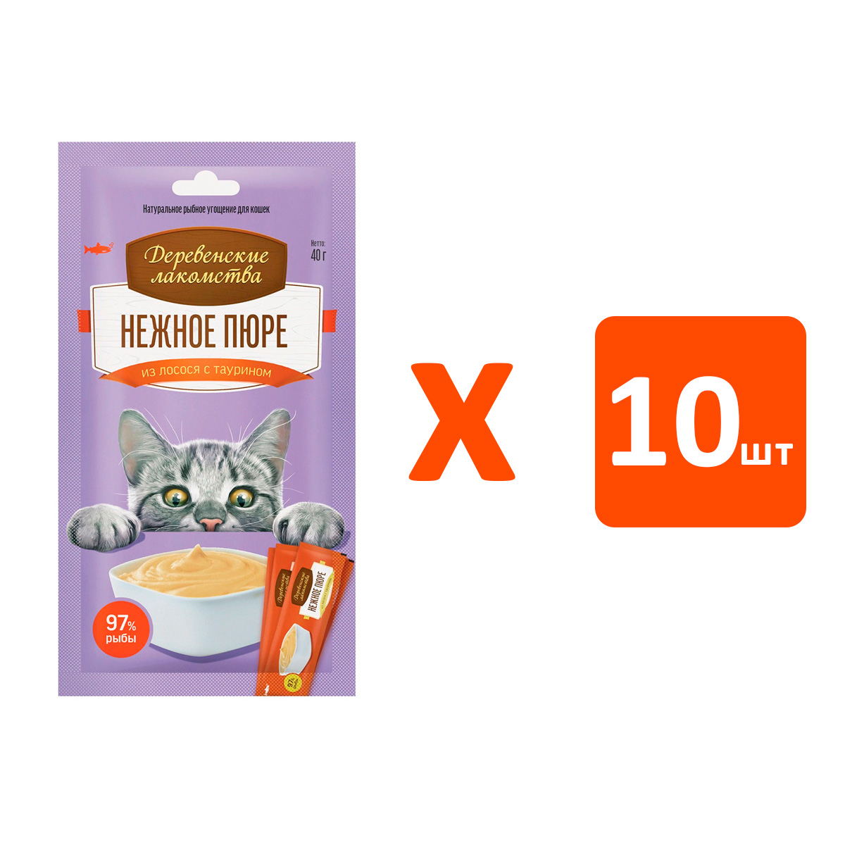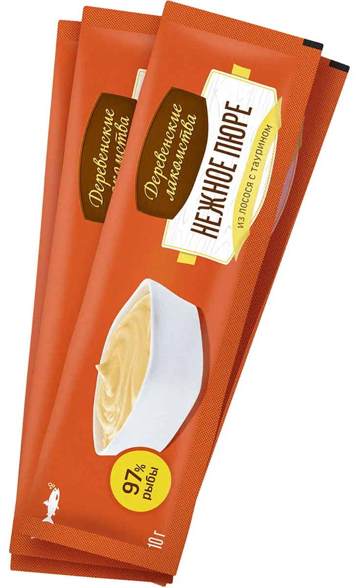 Лакомства для кошек ДЕРЕВЕНСКИЕ РЫБНЫЙ ДЕСЕРТ нежное пюре лосось, таурин (4 шт х 10)