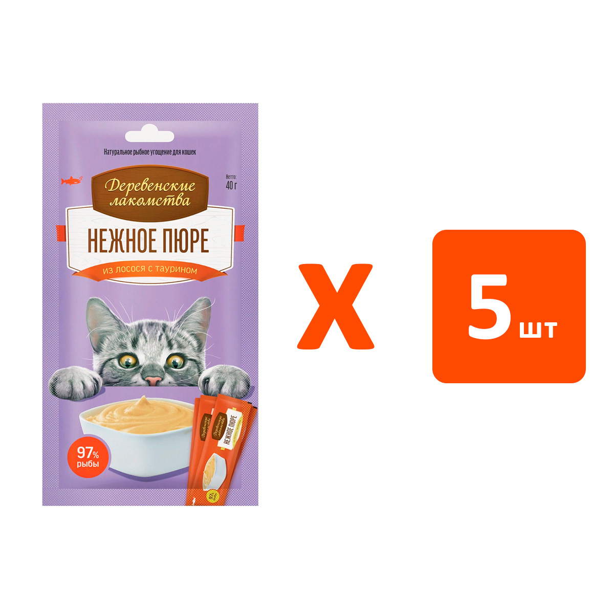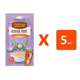Лакомства для кошек ДЕРЕВЕНСКИЕ РЫБНЫЙ ДЕСЕРТ нежное пюре лосось, таурин (4 шт х 5)