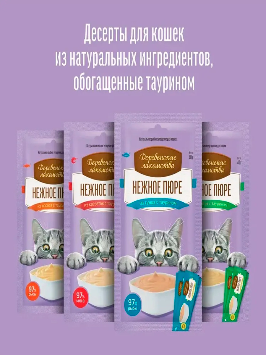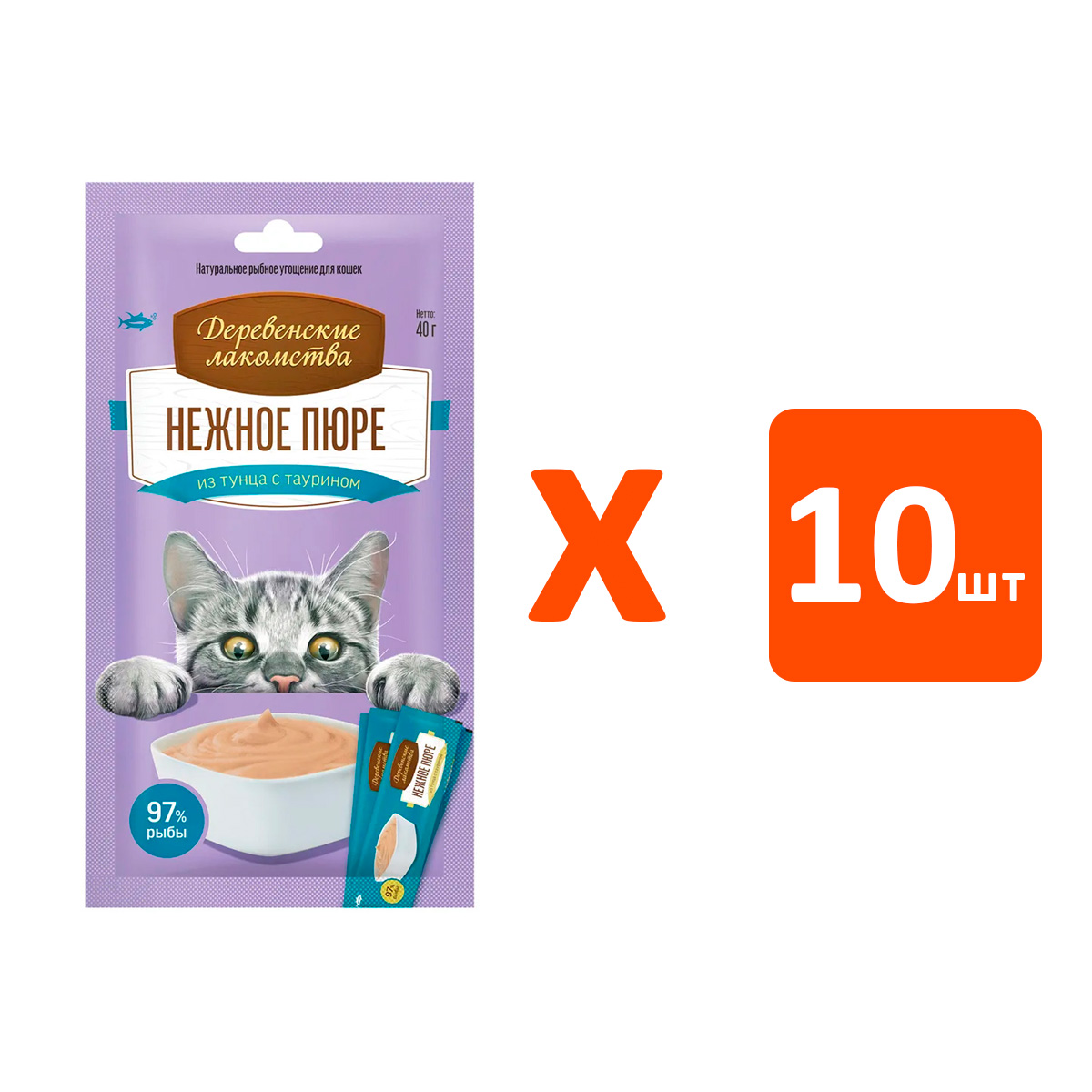 Лакомства для кошек ДЕРЕВЕНСКИЕ РЫБНЫЙ ДЕСЕРТ нежное пюре тунец, таурин (4 шт х 10)
