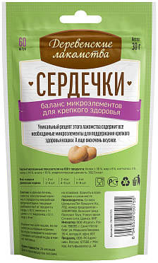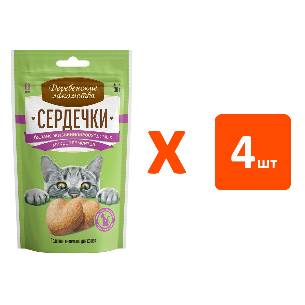 Лакомства для кошек ДЕРЕВЕНСКИЕ сердечки для поддержания баланса микроэлементов 30 гр (1 шт х 4)