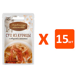 Лакомства для кошек ДЕРЕВЕНСКИЕ СУП курица, говядина, шпинат (35 гр х 15 шт)