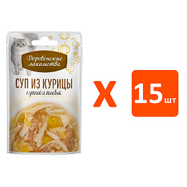 Лакомства для кошек ДЕРЕВЕНСКИЕ СУП курица, утка, тыква 35 гр (35 гр х 15 шт)