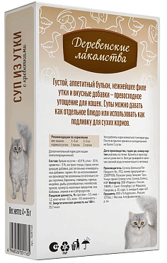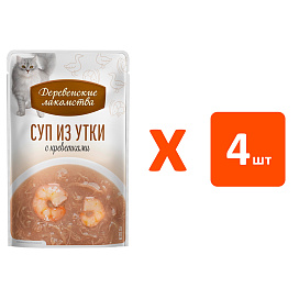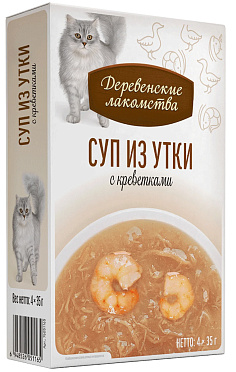 Лакомства для кошек ДЕРЕВЕНСКИЕ СУП набор паучей утка, креветка (35 гр х 4 шт)
