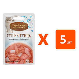 Лакомства для кошек ДЕРЕВЕНСКИЕ СУП тунец, кальмар, макрель (35 гр х 5 шт)