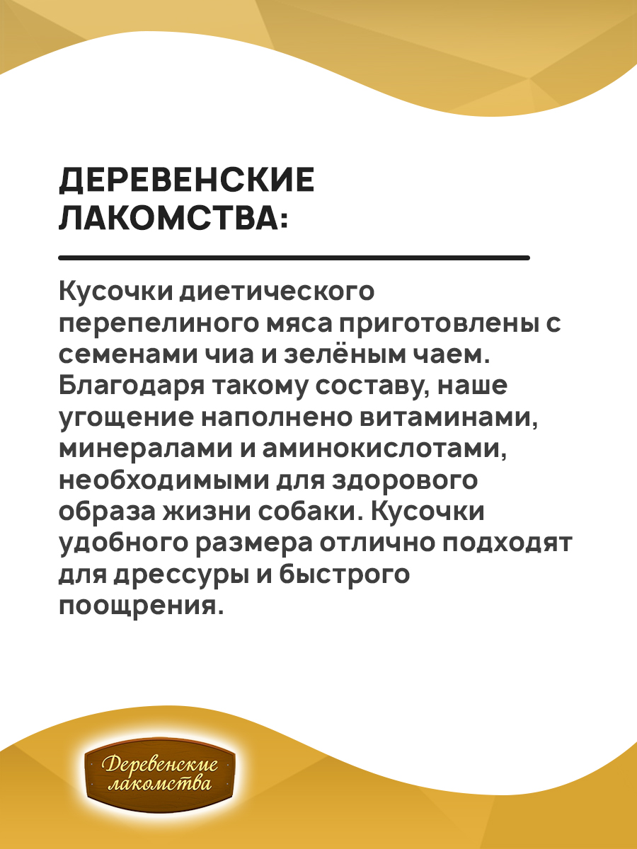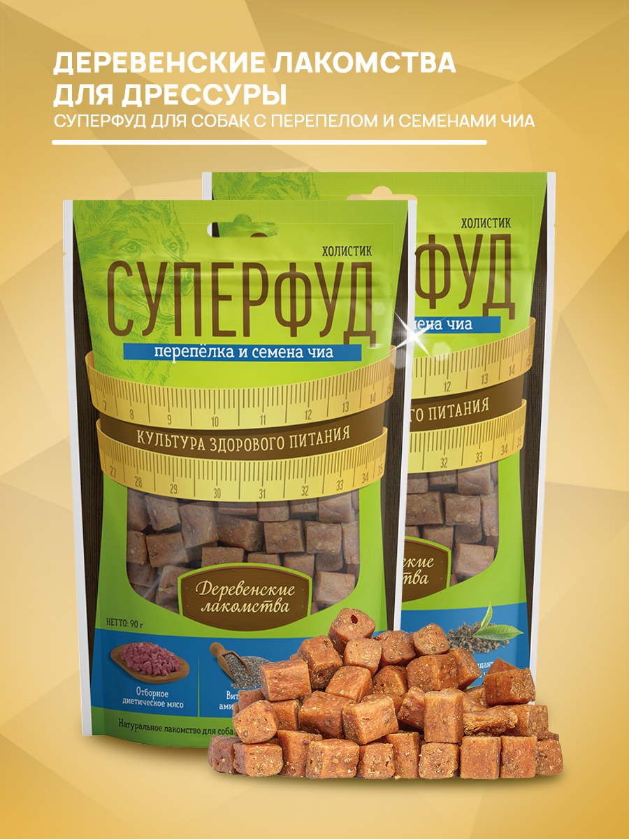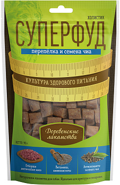Лакомства для собак ДЕРЕВЕНСКИЕ ДЛЯ ДРЕССУРЫ перепел, семена чиа (90 гр)