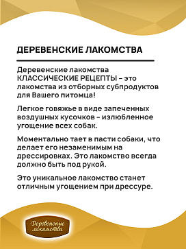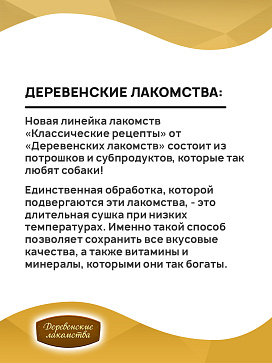 Деревенские лакомства КЛАССИЧЕСКИЕ РЕЦЕПТЫ – это лакомства из отборных субпродуктов для Вашего питомца!