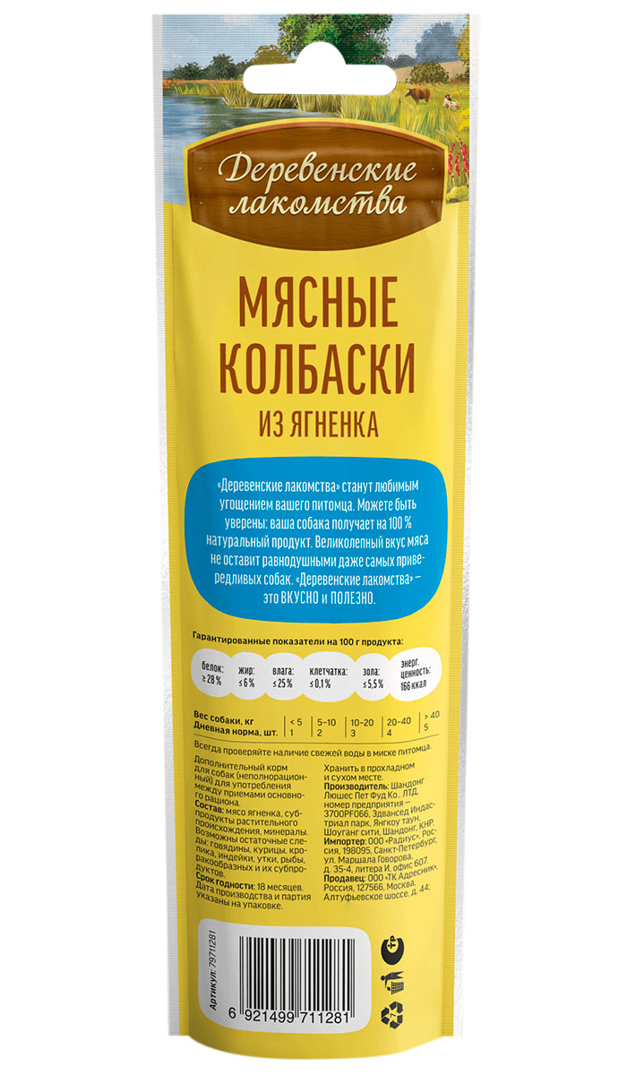 Лакомства для собак ДЕРЕВЕНСКИЕ колбаски ягненок (45 гр)Возраст питомца
