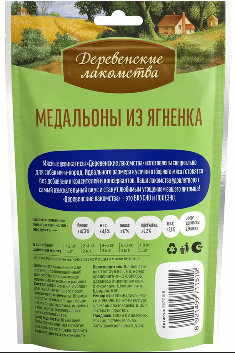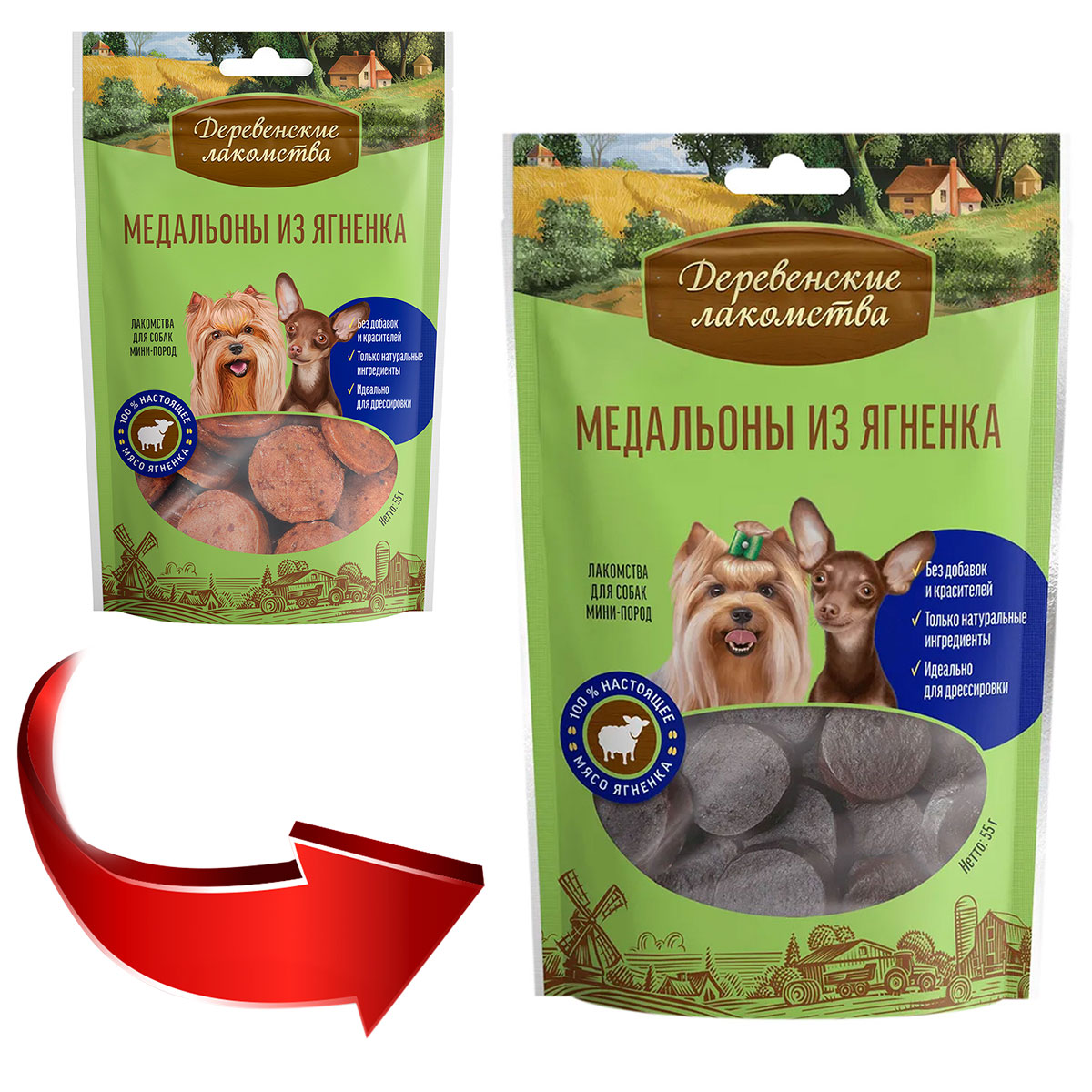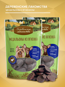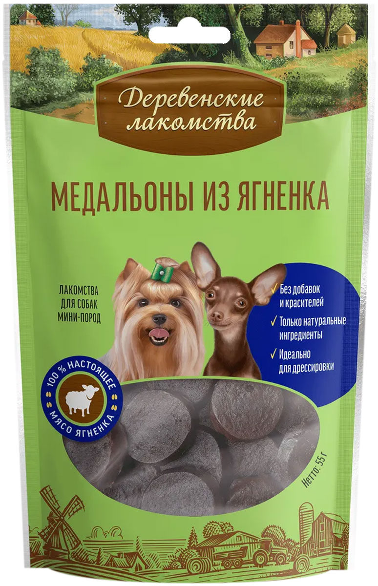 Лакомства для собак мелких пород ДЕРЕВЕНСКИЕ медальоны ягненок (55 гр)Возраст питомца