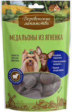 Лакомства для собак мелких пород ДЕРЕВЕНСКИЕ медальоны ягненок (55 гр)