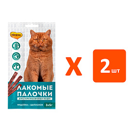 Лакомство для кастрированных котов и стерилизованных кошек МНЯМС лакомые палочки индейка, цыпленок (15 гр х 2 шт)
