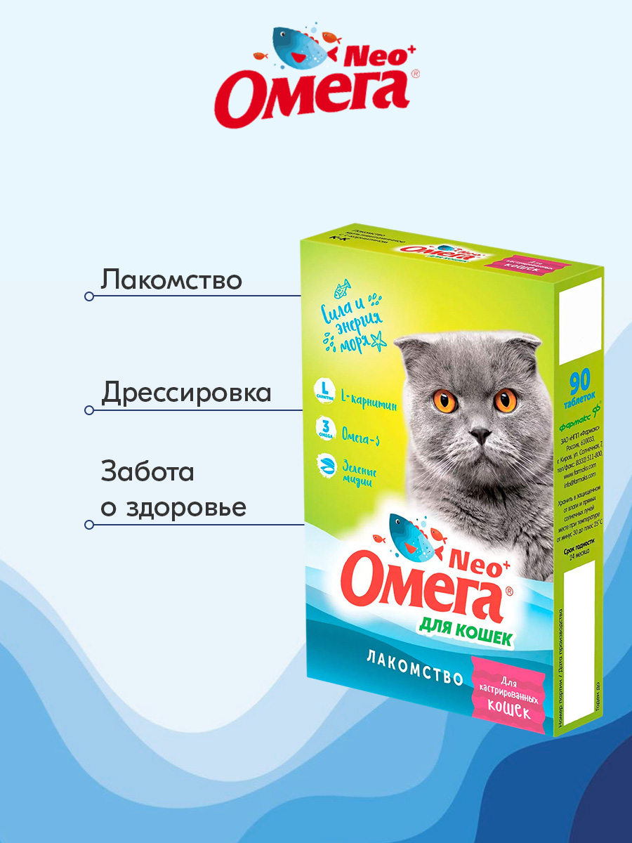 Омега Neo+ — вкусное и полезное лакомство для поощрения, баловства и поддержания организма кастрированных кошек.