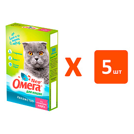 Лакомство для кастрированных котов и стерилизованных кошек ОМЕГА NEO+ L-карнитин (90 шт х 5)