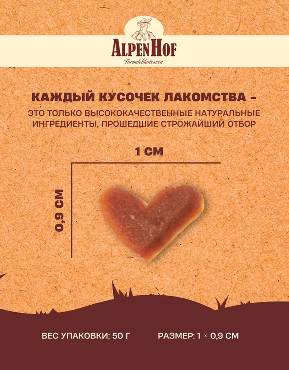 Лакомство для кошек AlpenHof сердечки утка 50 гр (1 шт)