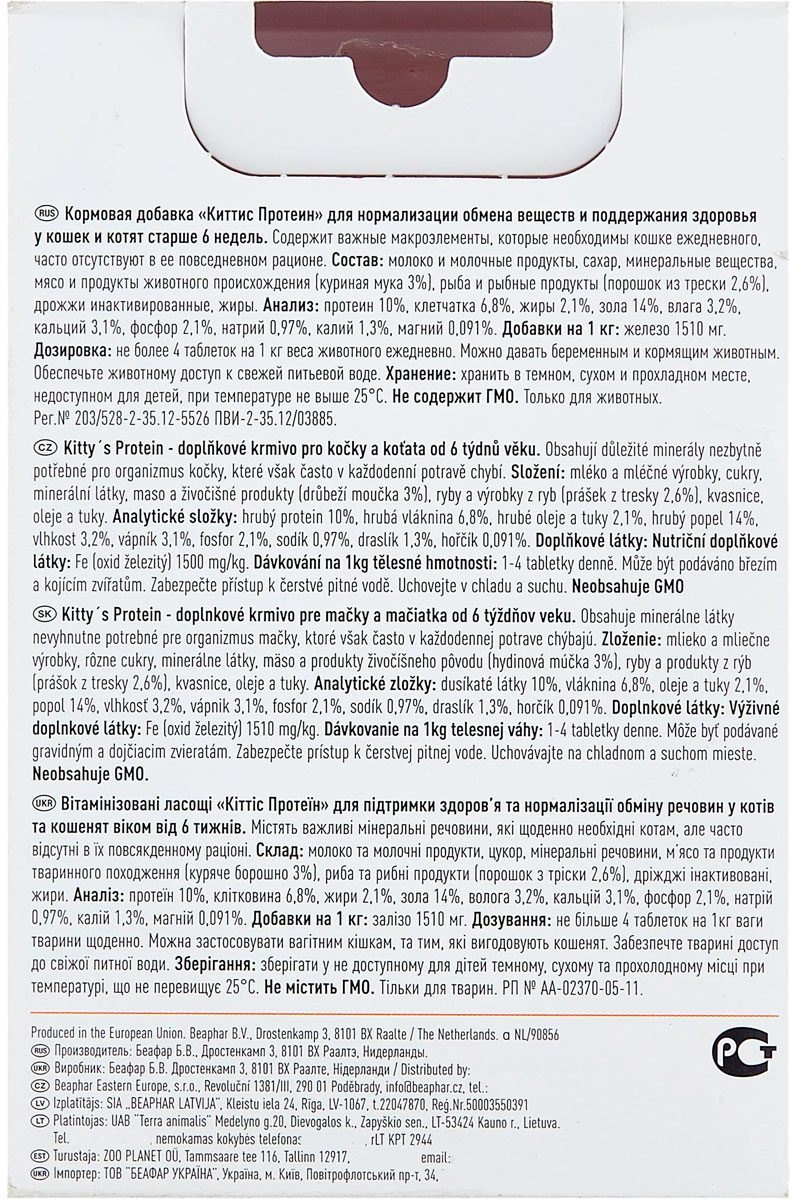 Лакомство для кошек BEAPHAR KITTY’S + PROTEIN витаминизированное протеин (180 шт)