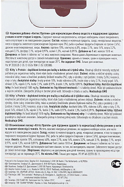 Молоко и молочные продукты, сахар, минеральные вещества, рыба и рыбопродукты (треска не менее 4 %), мясо и продукты животного происхождения, дрожжи, масла и жиры.