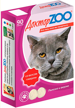 Лакомство для кошек ДОКТОР ZOO мультивитаминное со вкусом говядины, биотина (90 т)