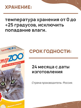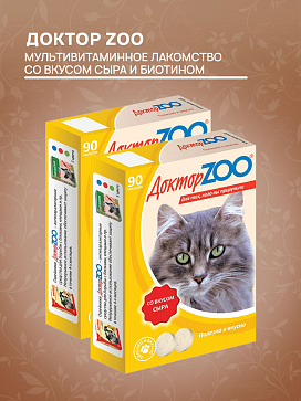 Лакомство для кошек ДОКТОР ZOO мультивитаминное со вкусом сыра, биотина (90 т х 2 шт)
