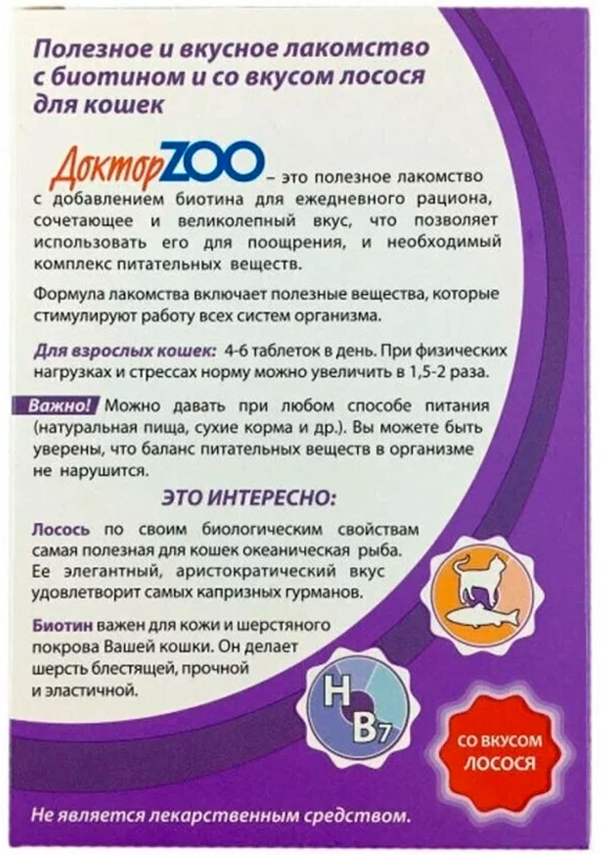 Лакомство для кошек ДОКТОР ZOO со вкусом лосося, биотина (90 т)