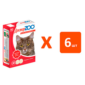 Лакомство для кошек ДОКТОР ZOO ЗДОРОВЬЕ КОЖИ И ШЕРСТИ мультивитаминное биотин, таурин (90 т х 6 шт)