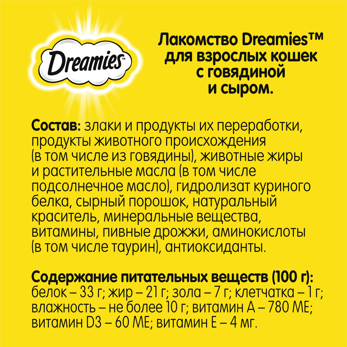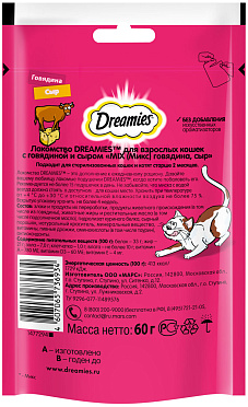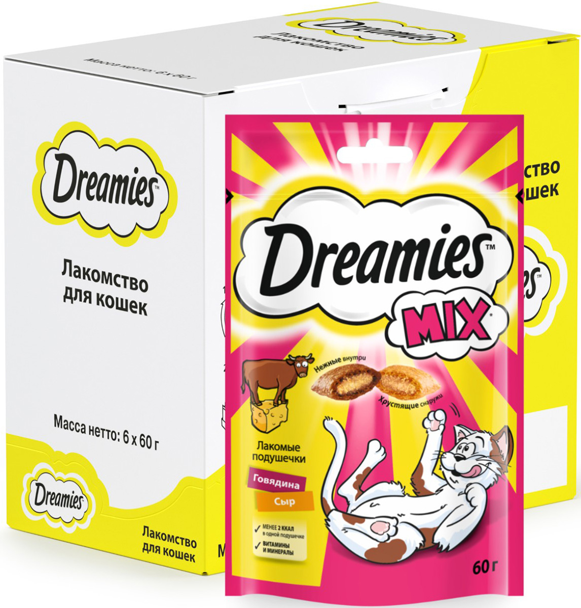 Лакомство для кошек DREAMIES MIX подушечки говядина, сыр (60 гр)