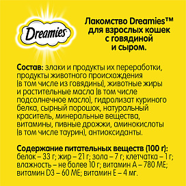 Лакомство DREAMIES - это дополнение к ежедневному рациону Вашей кошки.