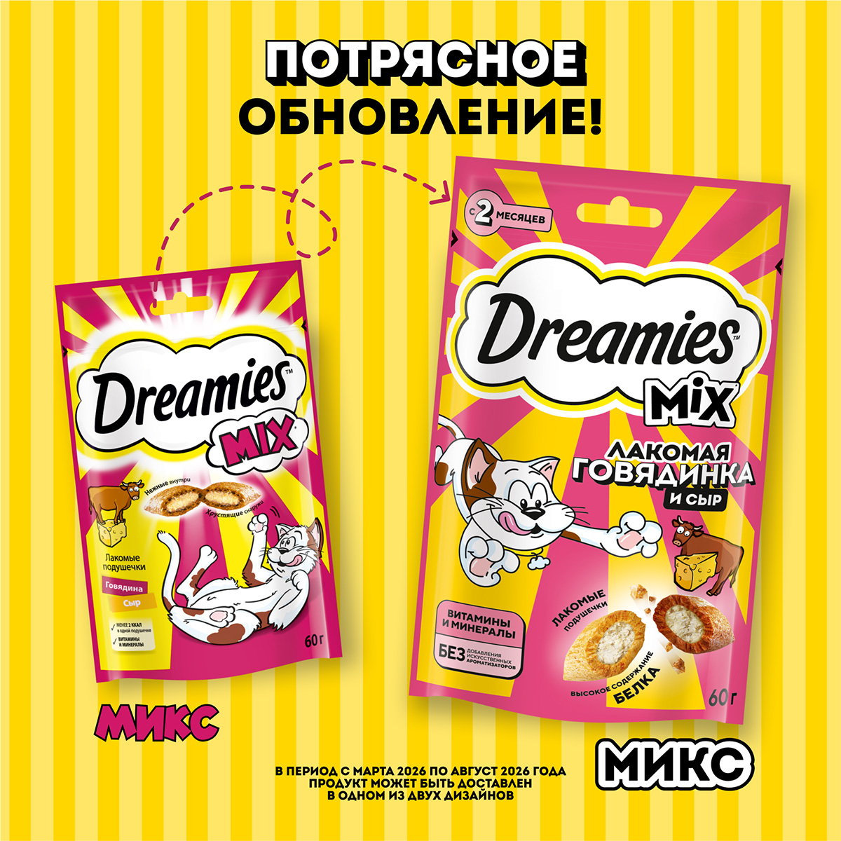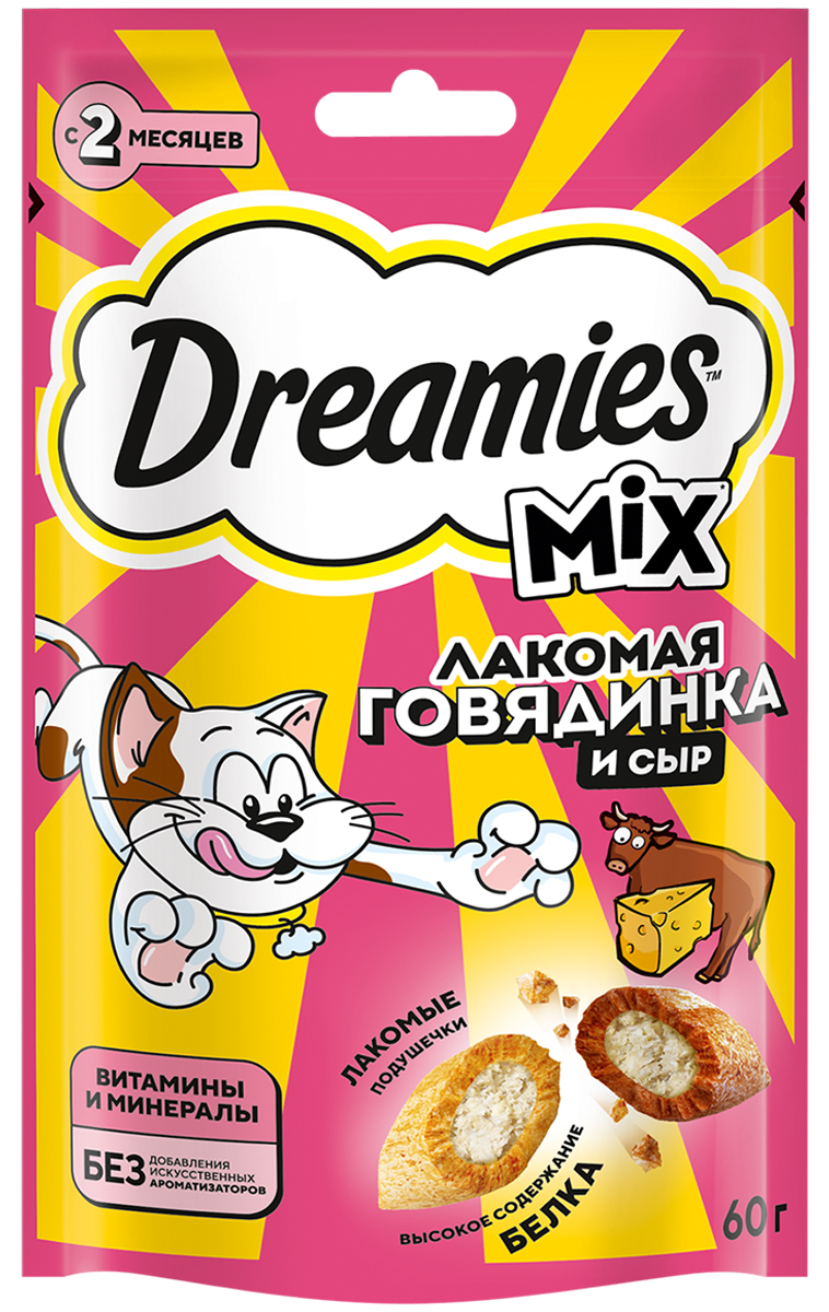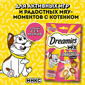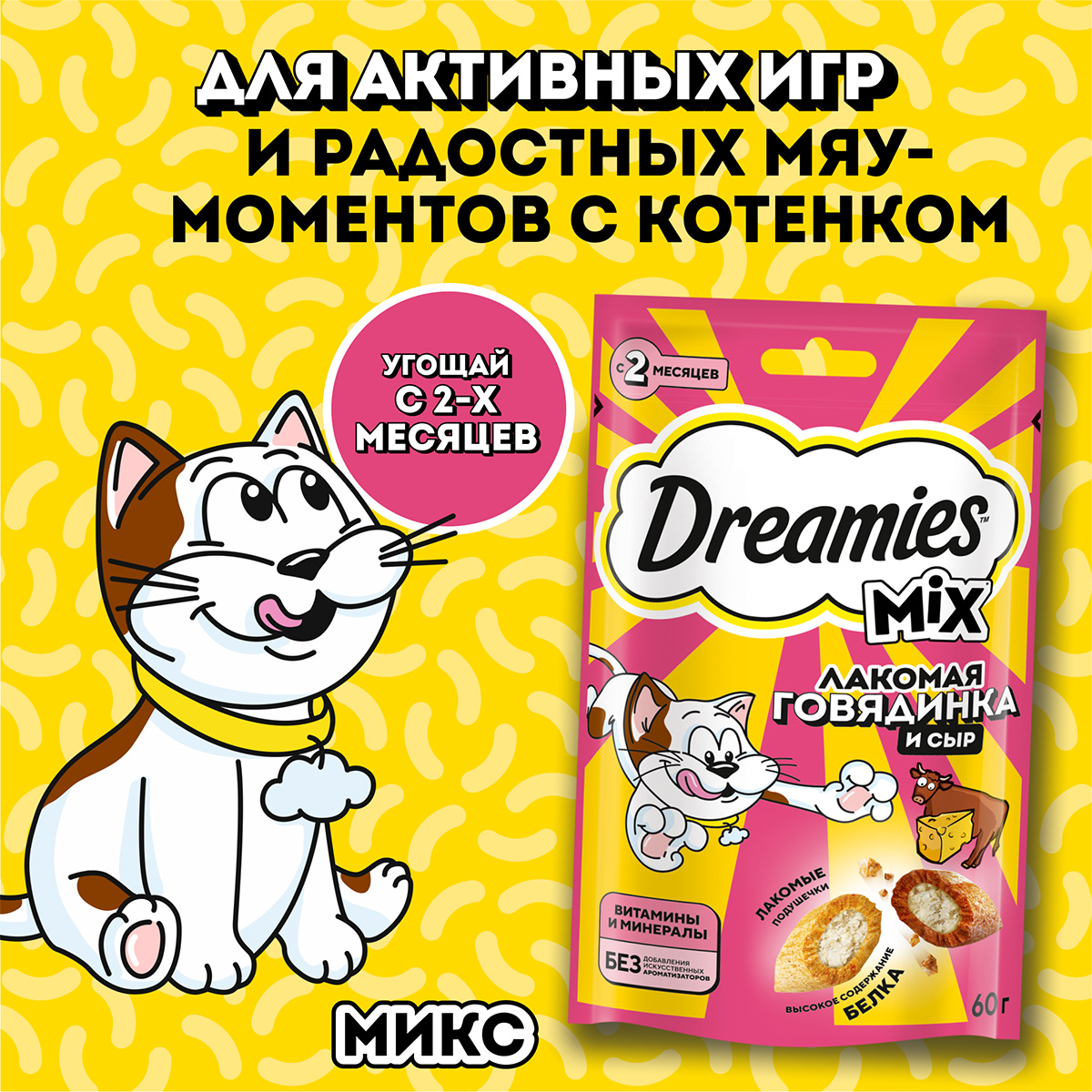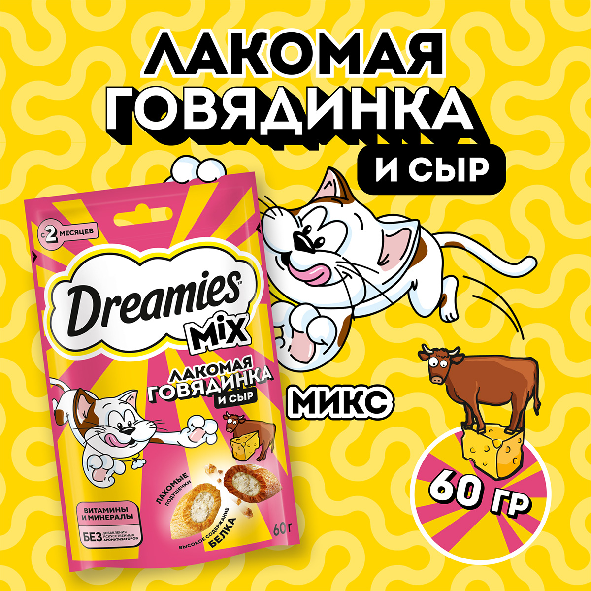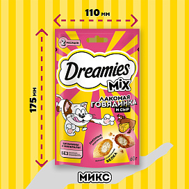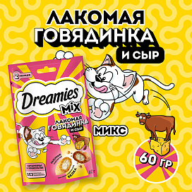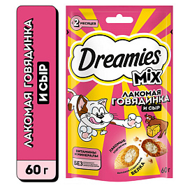 Лакомство для кошек DREAMIES MIX подушечки говядина, сыр (60 гр)