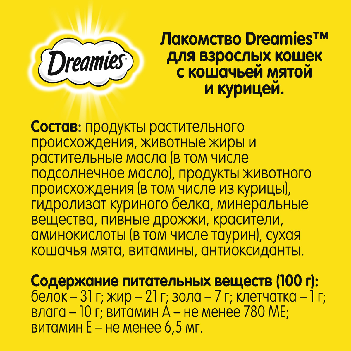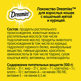 Лакомство DREAMIES - это дополнение к ежедневному рациону Вашей кошки.