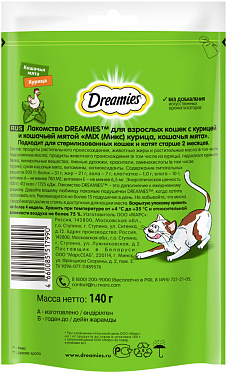 Лакомство для кошек DREAMIES MIX подушечки курица, мята (140 гр)